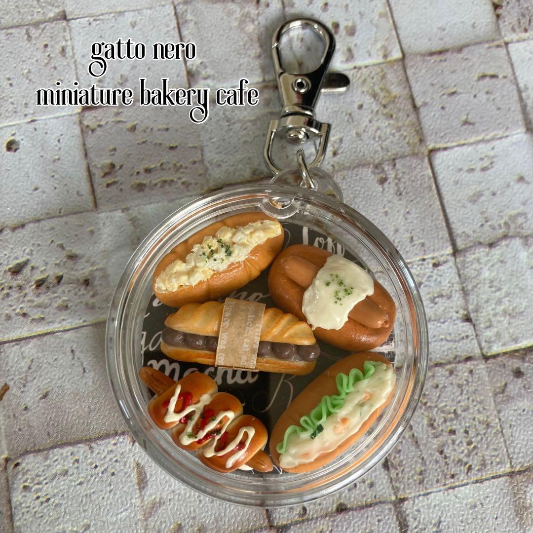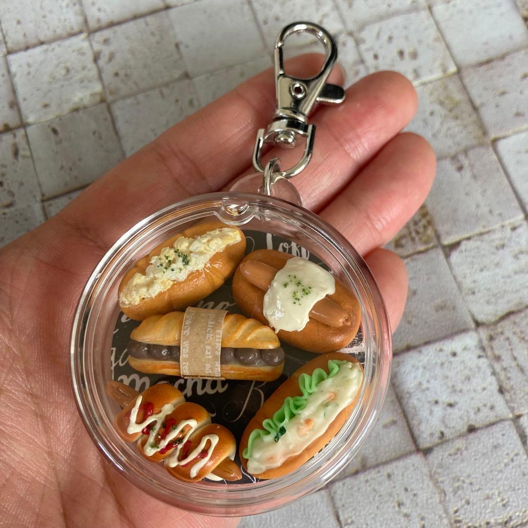 ミニチュアパンとコーヒーのキーホルダーもできました *コーヒー *クロワッサン *渦巻きデニッシュ *メロンパン *シュガーミルクパン *クリームパンチョココロネを入れたかったけど厚みがあって蓋が閉まらなかった 残念 キーホルダー用に作り直そうかな。