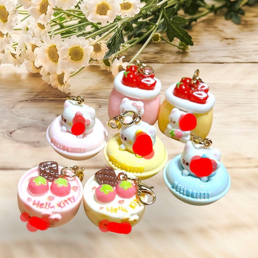 新作瓶入りプリンキーホルダー🍮🥄 カラメルが甘く香るプリンを瓶に入れて みました!🍮🥄トッピングには苺とメロンを乗せて、果物の甘酸っぱさがプリンの甘さを引き立てます! ぽてっとしてる瓶なので、見た目も可愛い瓶に なりました♡フェイクスイーツ樹脂粘土。