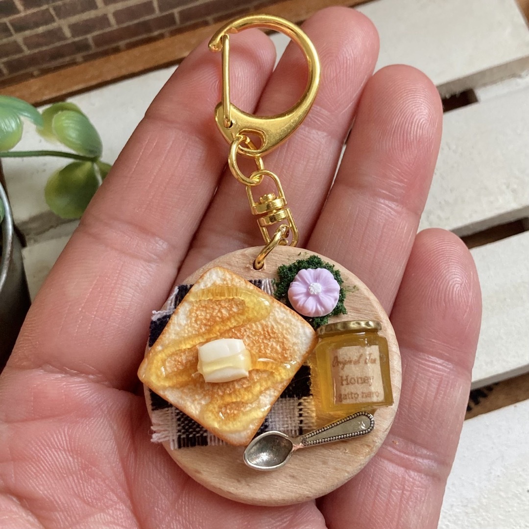 ミニチュアフード のキーホルダー パンケーキとスクランブルエッグとサラダ はちみつとコーヒー 小さなパーツも一つにして持ち歩けるのが嬉しいミニチュアキーホルダーの種類を増やそう 自分用も作ろうかな 🛍️プロフィールのリンクからお使いのサイトを選んで購入。