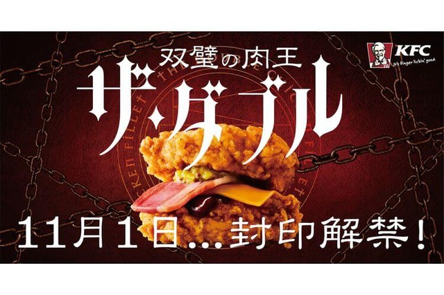 ケンタッキーに、チキンフィレで具材をはさむ衝撃のサンドメニューが復活!「THE DOUBLE ザ・ダブル 」11月1日 木 新発売日本ケンタッキー ・フライド・チキン株式会社のプレスリリース。