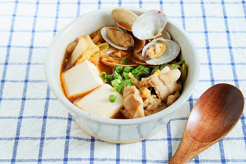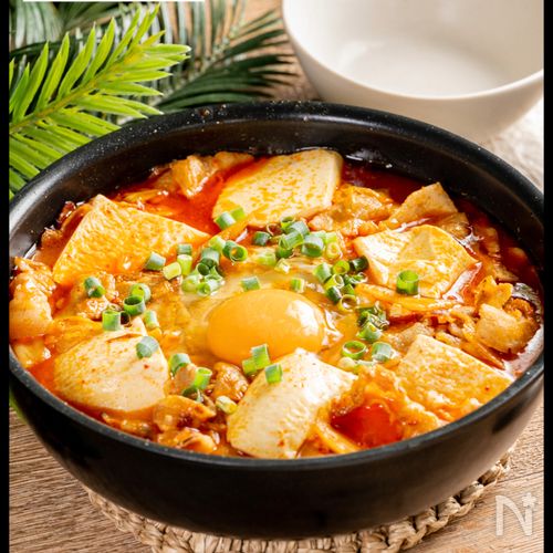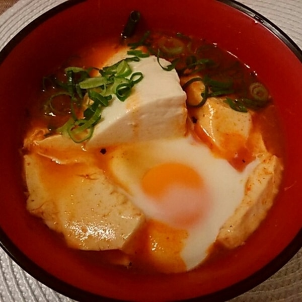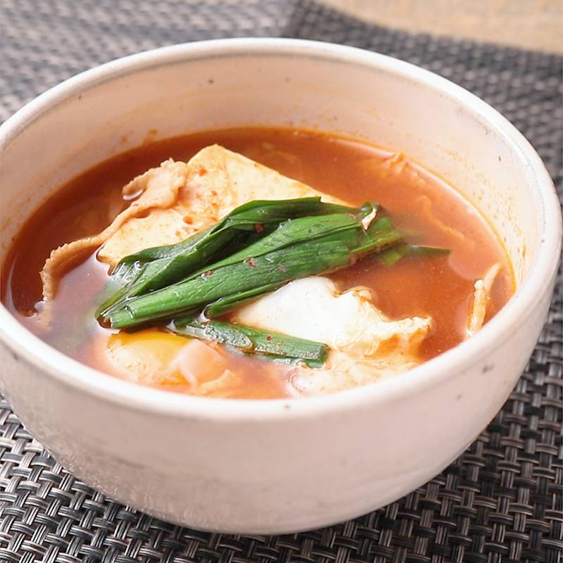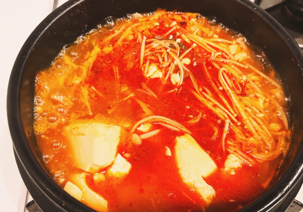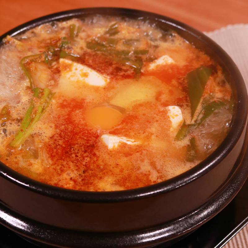シンプルだけど本格的!スンドゥブチゲレシピ動画, ★調理時間の目安:約10分, 寒い日に食べると、体の内側からポッカポカになれる,スンドゥブチゲレシピをご紹介します✨, 水に牛肉ダシダと豆腐入れて沸騰させて、, ヤンニョム 韓国の合わせ調味料という意味 を混ぜ溶かして,5分ほど煮たら、切った長ねぎと卵落として完成!, シンプルだけど本格的な味わいのスンドゥブチゲは、, おうちにいながらも。