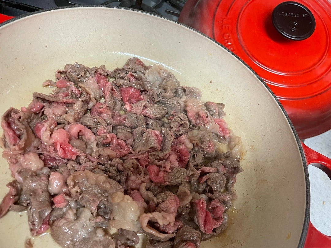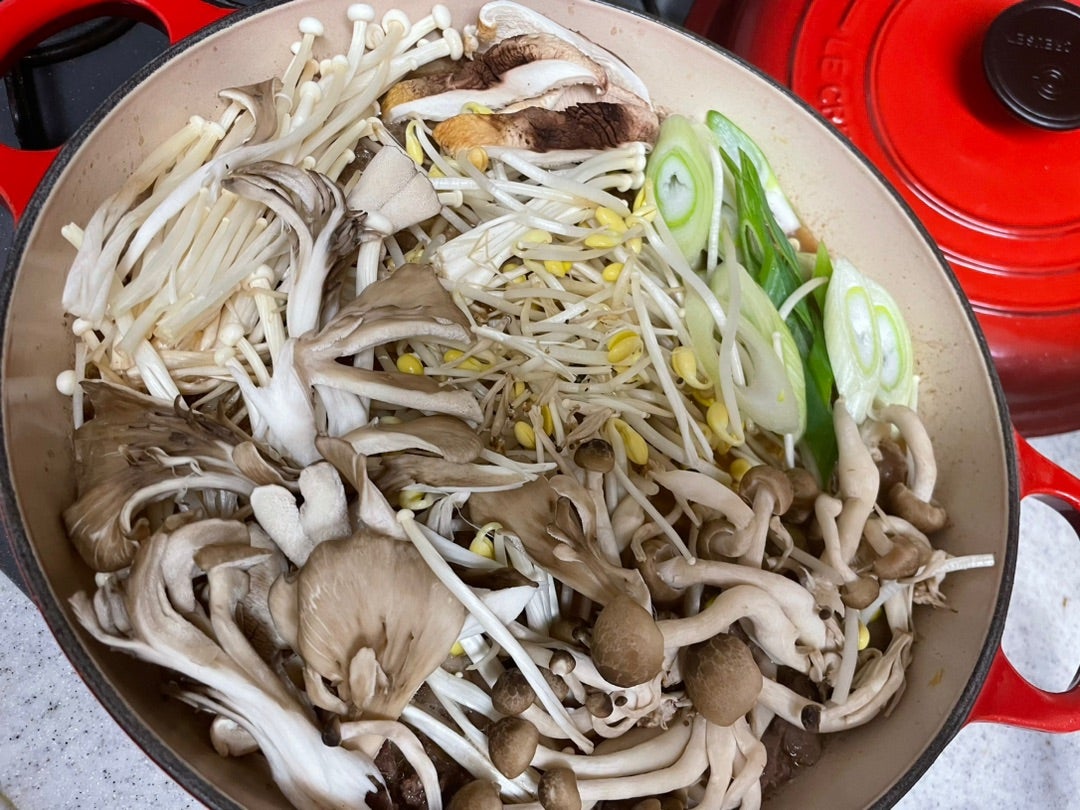 ホルモンスンドゥブチゲ , 🍴材料🍴, 牛ホルモン200g, サラダ油適量, 細かい唐辛子粉大さじ2, おろしにんにく小さじ1, 水 400cc, 絹豆腐1個, 玉ねぎ1 2個, エホバク1 3個 ズッキーニでもOK , ダシダ小さじ1, 味の素小さじ1, 薄口醤油 大さじ1, 卵1個, ネギ少し, エノキ少し。