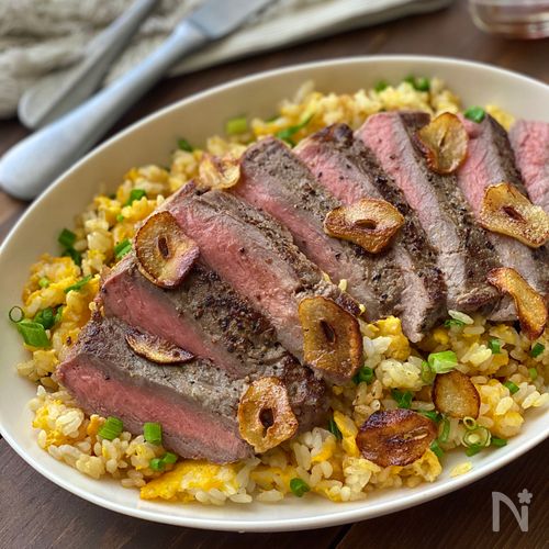 極上の一品 高級ステーキ屋の味♪ステーキガーリックライスのレシピ・作り方 - ちょこっと学べるレシピサイト『なるほど食堂』。
