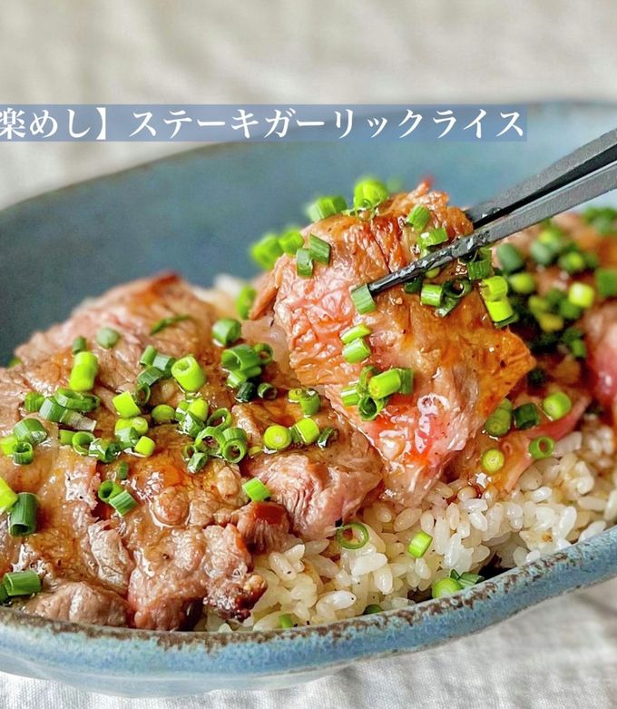 リュウジさんのレシピ を作ってみた♡飯テロ!ステーキ肉でガッツリな「至高のガーリックライス」MADURO ONLINE マデュロオンライン。