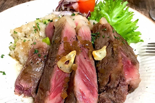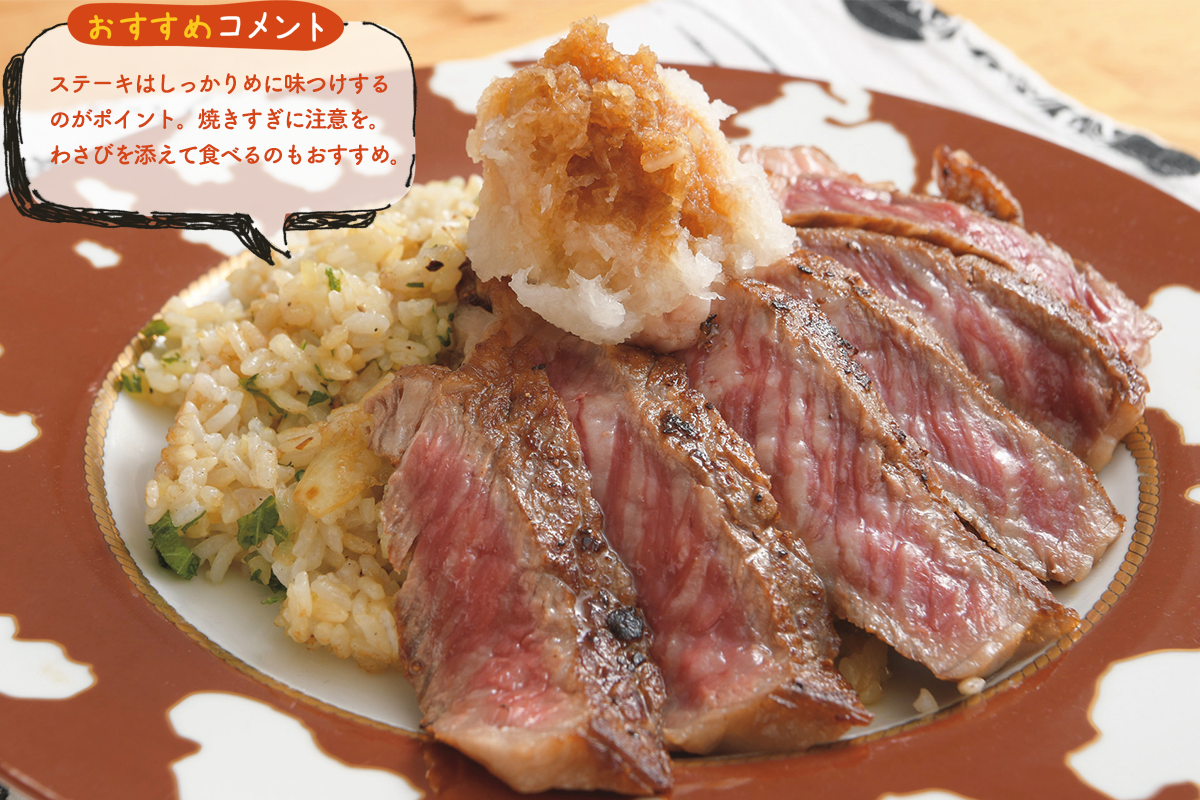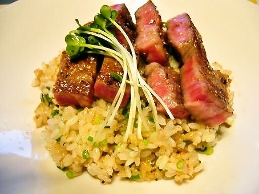 ステーキガーリックライスお料理レシピユワキヤ醤油・味噌大分。