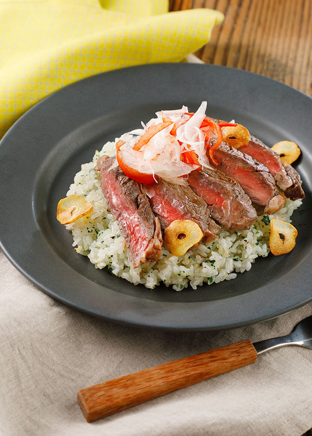 ガーリック・ステーキライスレシピBALMUDA The Plate ProBALMUDA バルミューダ 公式サイト。