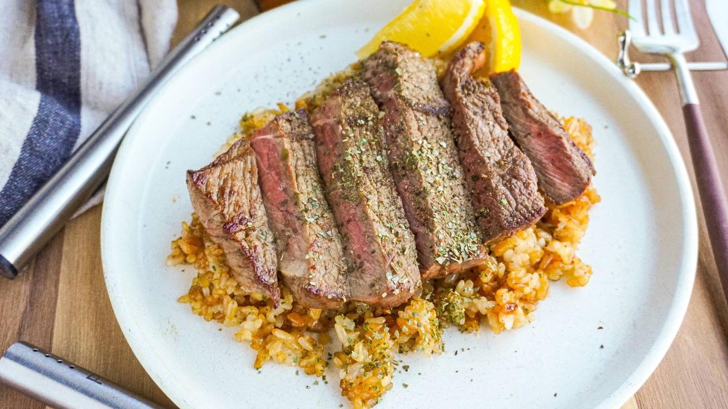 フライパン1枚レシピ うまーい「ステーキ&ガーリックライス」のつくりかた - メシ通ホットペッパーグルメ。