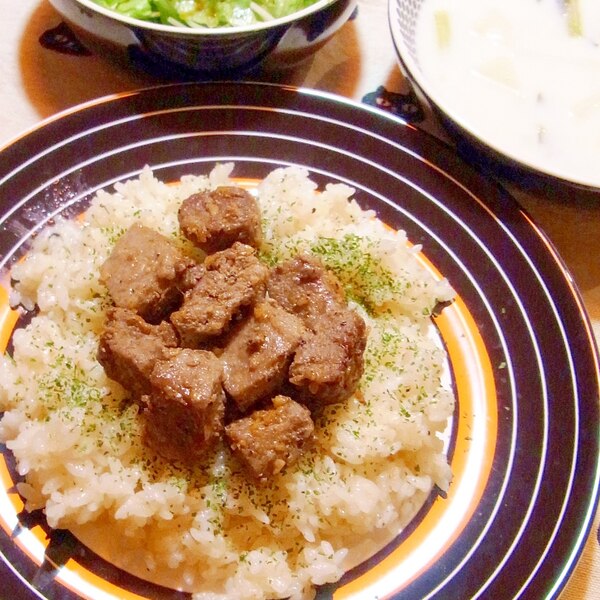 ステーキソースで簡単!ビーフガーリックライスぶるキッチン。