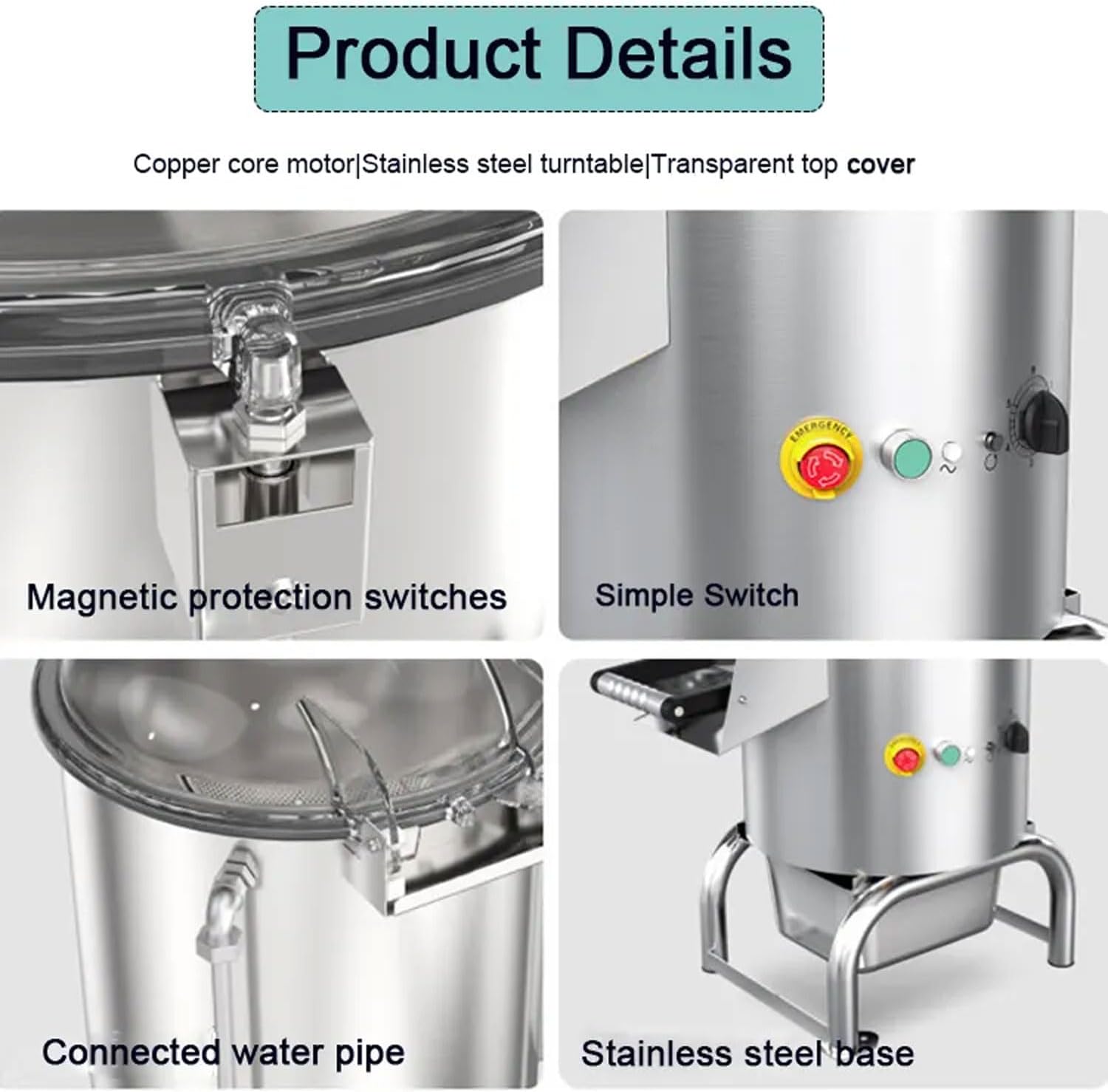 1500W 業務用ジャガイモの皮むき器、150kg h 電気野菜洗浄皮むき機、ステンレス製遠心スピン、ユニバーサル注水ポートとホイール付き、ジャガイモ、ニンジン、ショウガ用- メルカリ。