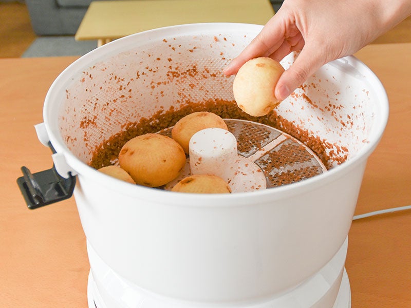 電動ジャガイモの皮むき機、機械式回転皮むき安全な多機能ジャガイモの皮むき機、ワンボタン皮むき機 電動まとめて皮むき「じゃがむけったー」』を発売サンコー株式会社のプレスリリース。