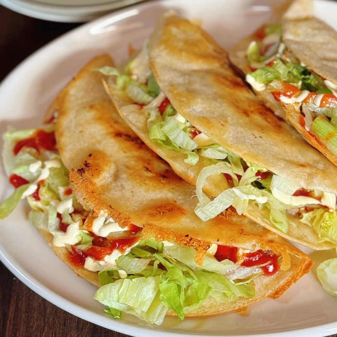 卵と豚ひき肉をたっぷり入れてこんがりと焼いた くるくるトルティーヤ巻きトルティーヤタコス豚ひき肉スイートチリソースshorts。