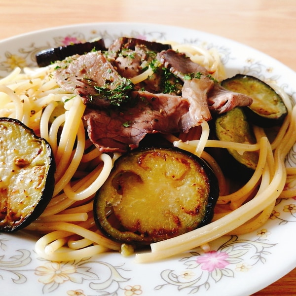 ローストビーフとなすのパスタ レシピ・作り方 by はじゃじゃ - 楽天レシピ。