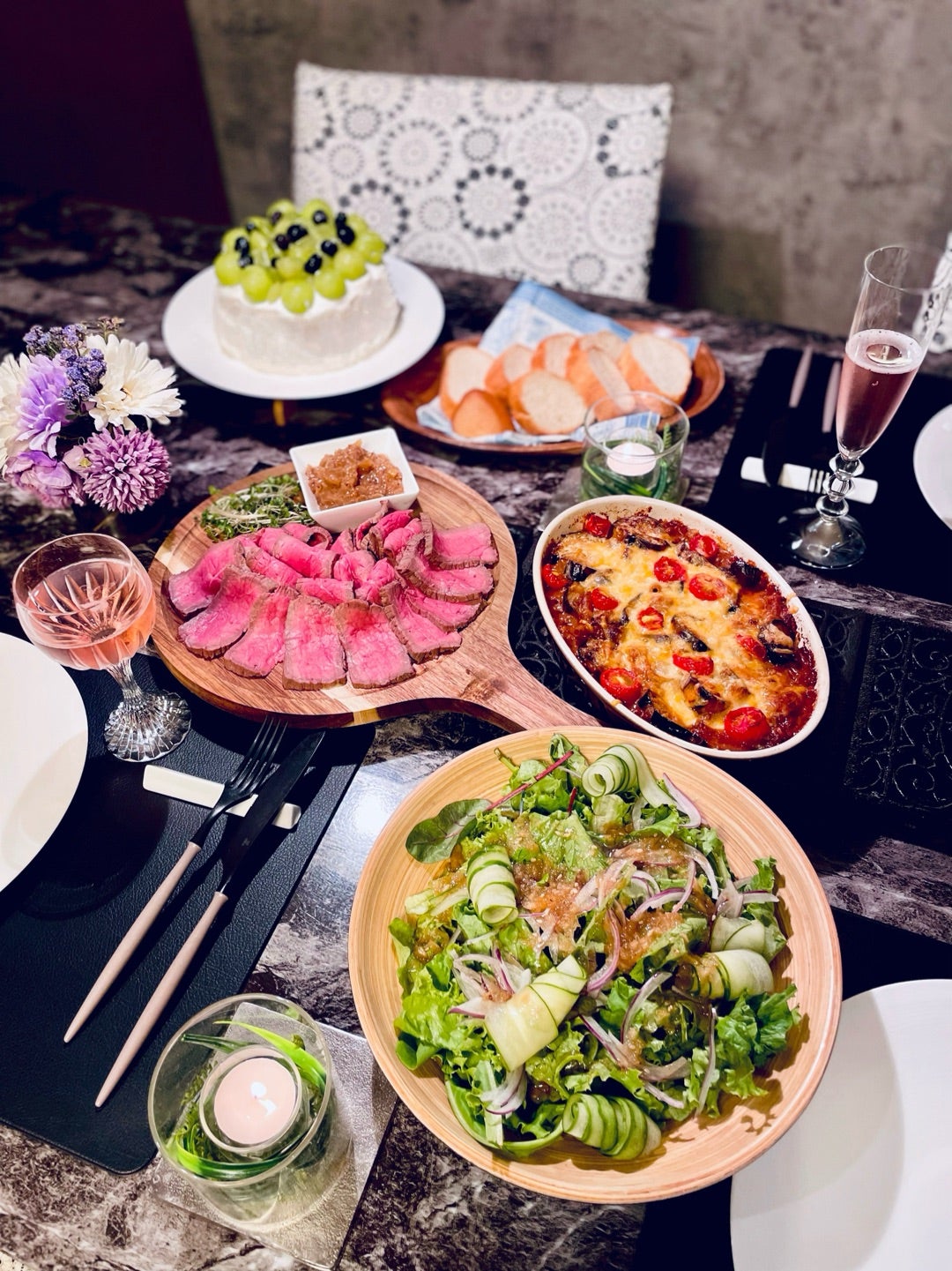 自宅で「肉バル風」パーティー献立│ローストビーフとステーキを楽しむ。