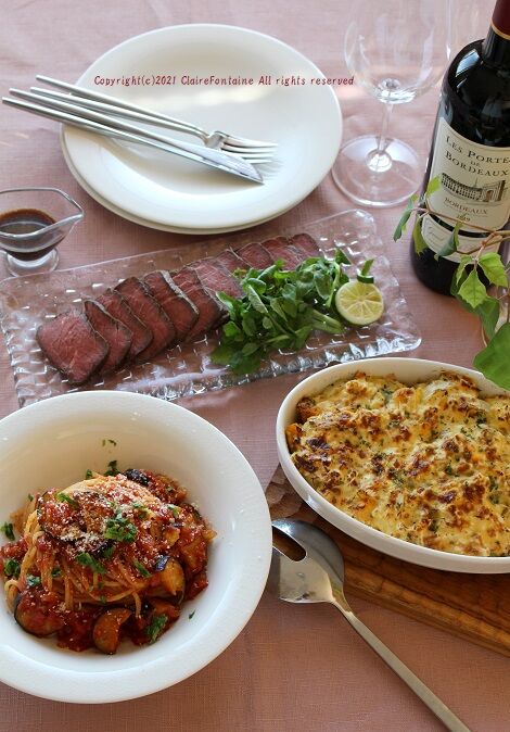 ローストビーフ!野菜のタルタル焼き!茄子のトマトソースパスタ♪ : clairefontaine。