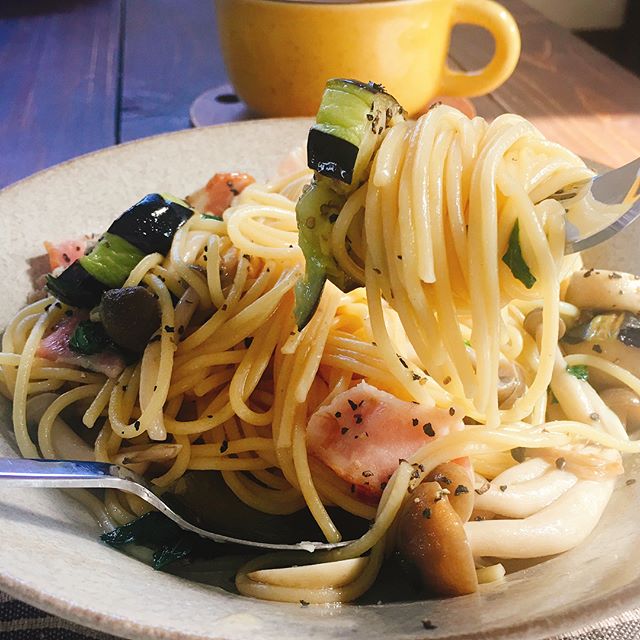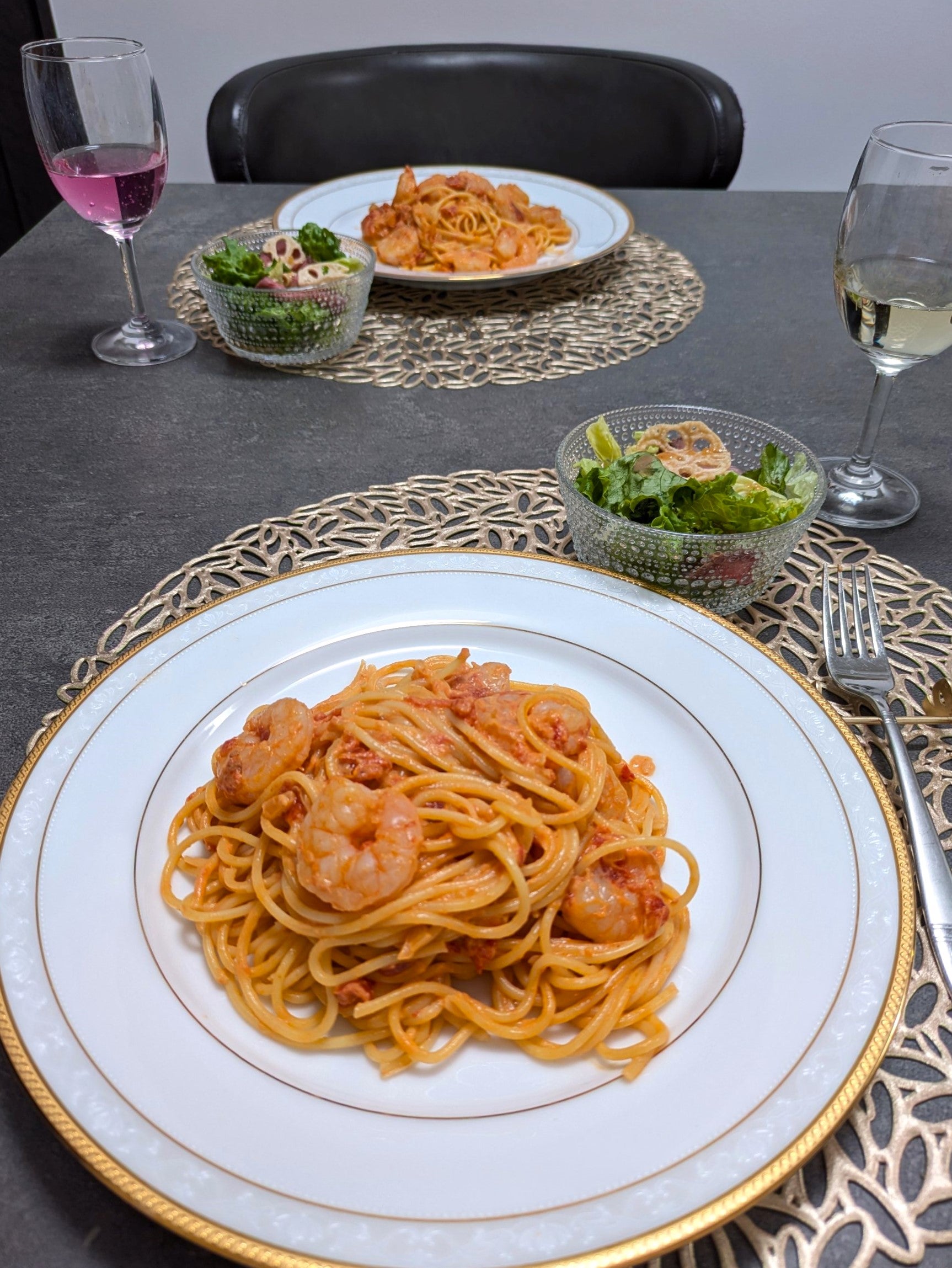 ポトフの日は簡単にパスタで済ませる夕飯♡ ポトフレシピは一つ前の投稿で!パスタ夕飯夜ご飯晩ごはん食卓献立トマトクリームパスタポトフスープよるごはんよしざわ窯器。