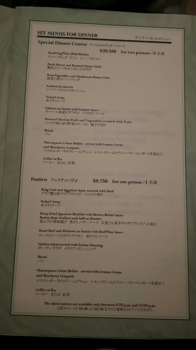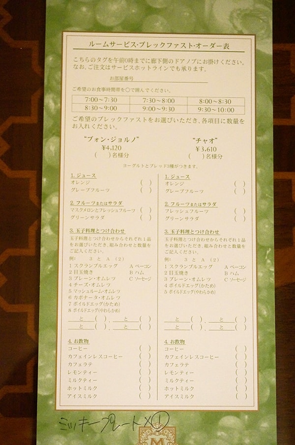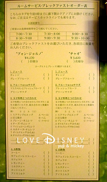 ミラコスタ ルームサービスメニュー - まったり日和。