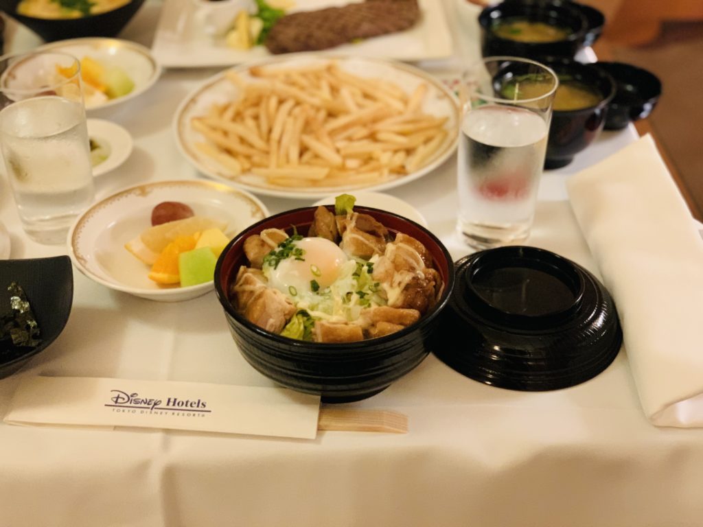 ミラコスタ ルームサービスでステーキ丼と海老天丼とおにぎり三種と 我が家お気に入りのフレンチフライポテト~~!≪2019年3月☆旅行記1日目≫。