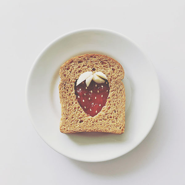 valoさんのかわいい朝ごはんレシピ06見た目もイチゴなイチゴジャムサンドファッション雑誌『リンネル』の読みもの。