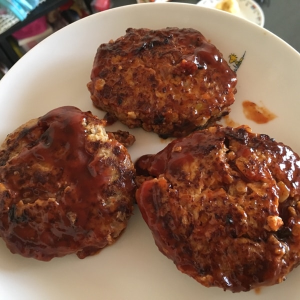 卵、牛乳、パン粉なしハンバーグマヨネーズで柔か♪。