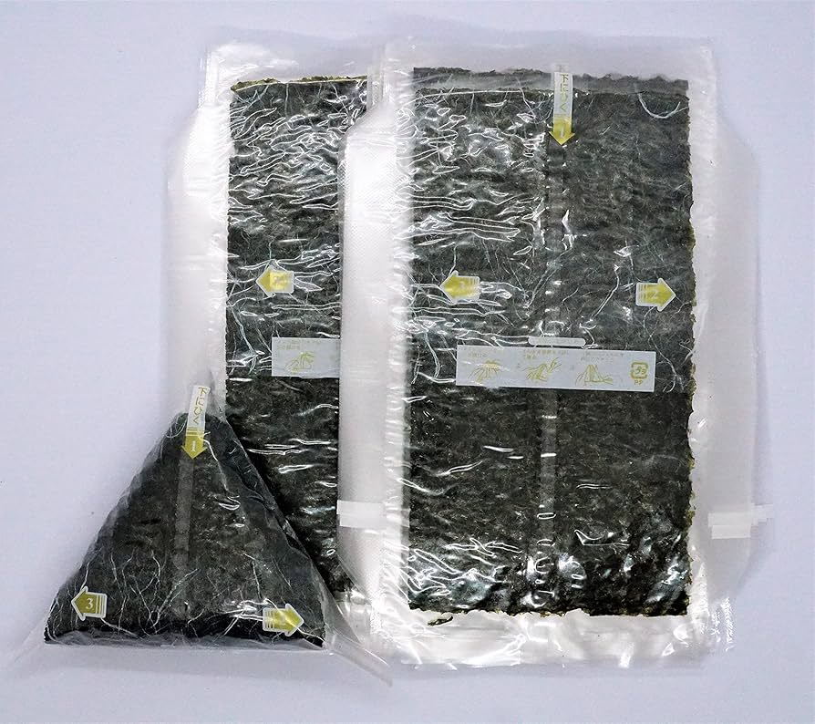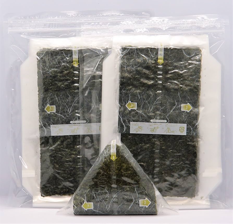 Amazonおにぎり用海苔 50枚 25枚入り✕2袋有明海産 コンビニフィルム 焼きのり全形半切り 1 2サイズ亀屋海苔 コンビニのようなパリパリおにぎりがご自宅で気軽に作れます海産物問屋サンマルゴ焼きのり 通販。