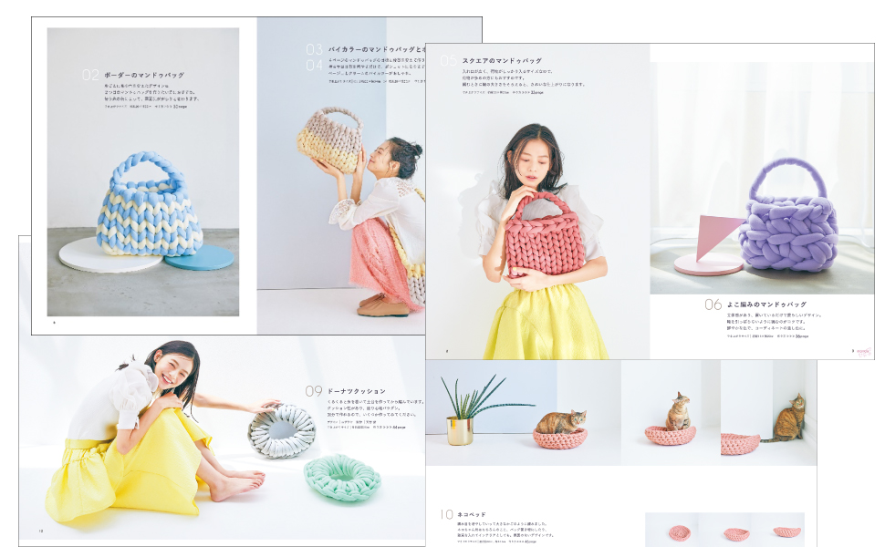 極太でもこもこ。韓国で大ブームのマンドゥバッグをつくろう! 『マンドゥバッグが作れる! 手だけで編めるチャンキーニット糸付きBOOK』BOOKウォッチ。
