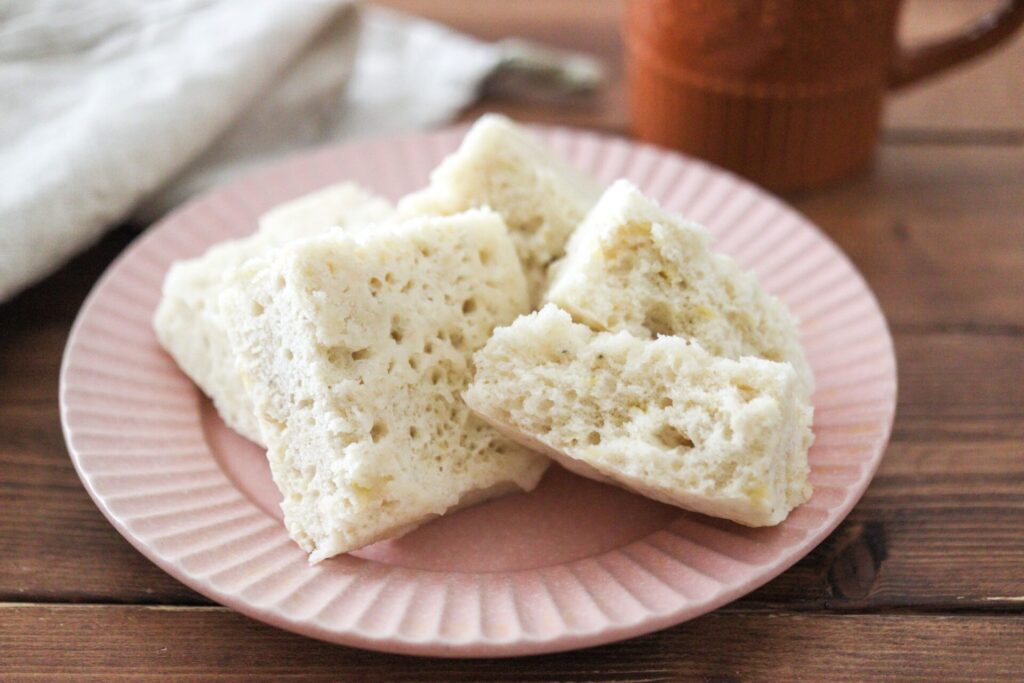 電子レンジで作る「バナナ蒸しパン」レンチンで4分30秒!バナナがたっぷり入ったフワモチ食感の甘くて美味しいバナナ蒸しパン。