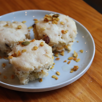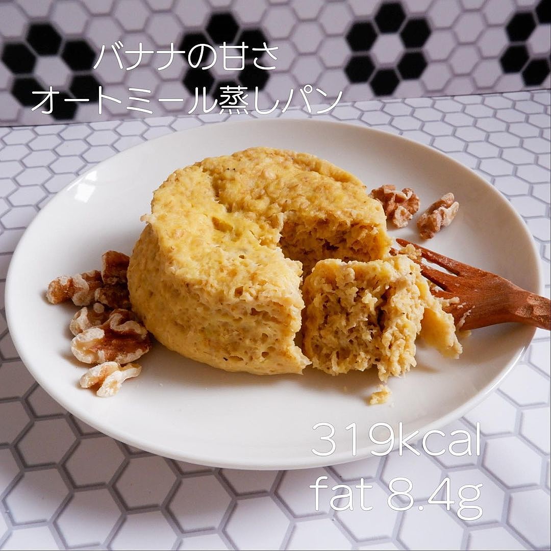 低糖質!レンジ3分♪もちもちオートミールの豆乳バナナ蒸しパン。
