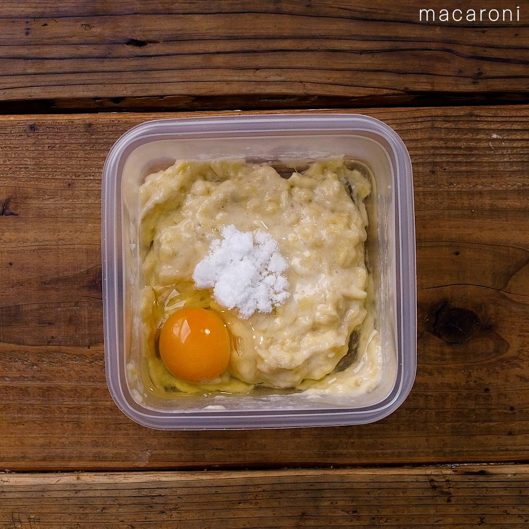 レンジで3分半!タッパーひとつで簡単♩バナナ蒸しパン。