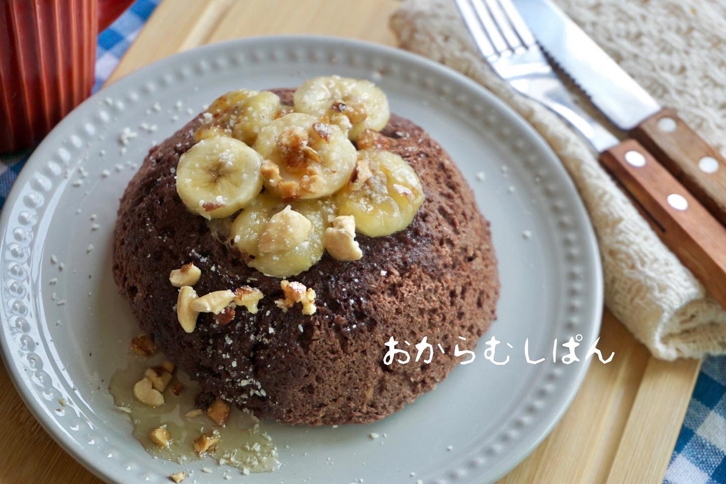 電子レンジで簡単!バナナおから蒸しパン♪卵なし小麦粉なし おからパウダーレシピ 管理栄養士namiのレシピブログ。
