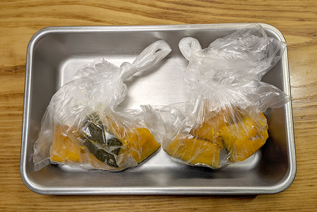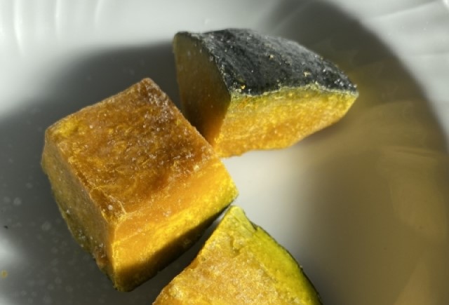 冷凍したかぼちゃの解凍方法、自然解凍、流水解凍、氷水解凍のどれがいいのか検証してみた生活知恵袋。