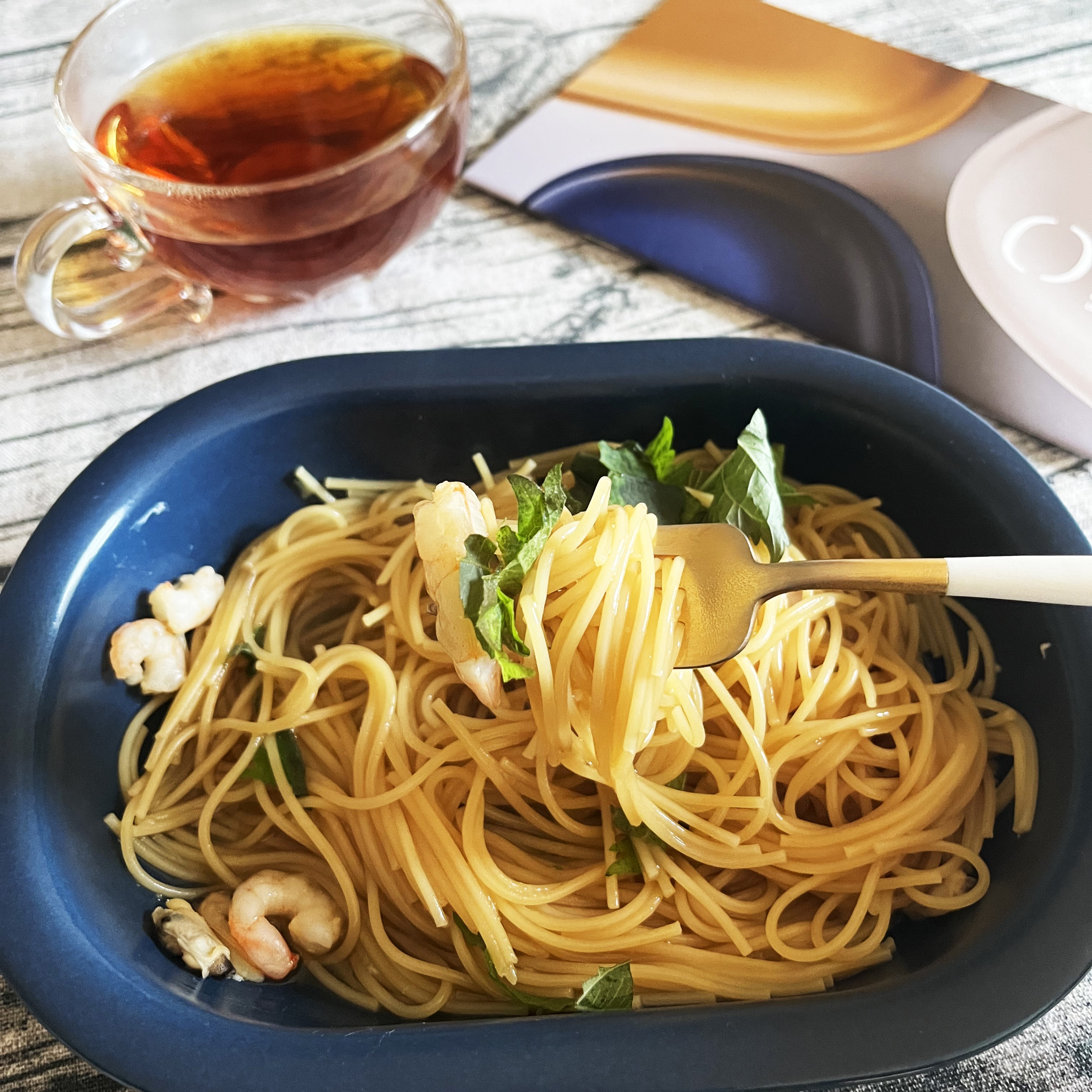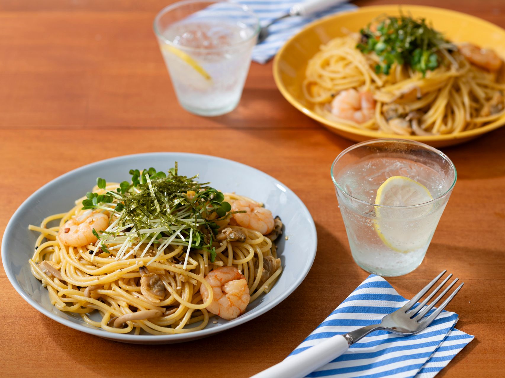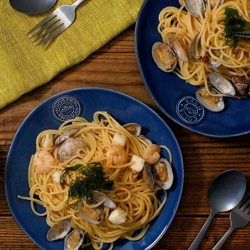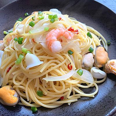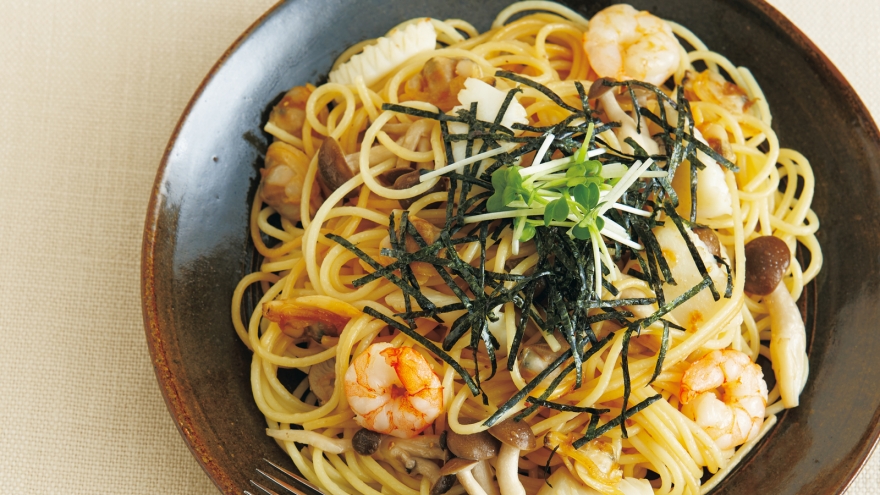 シーフード和風パスタ めんつゆ (374 無料写真)