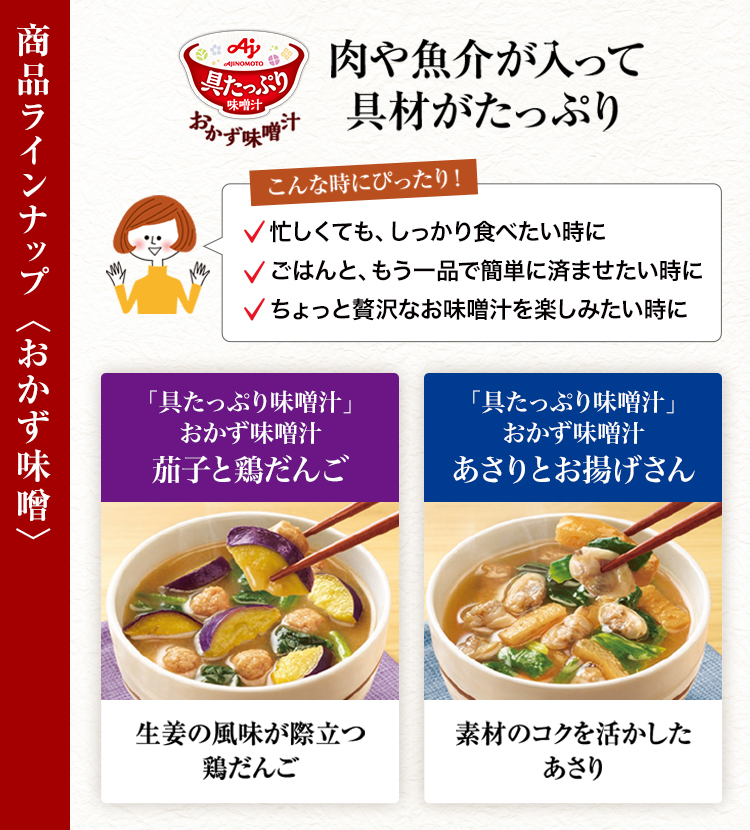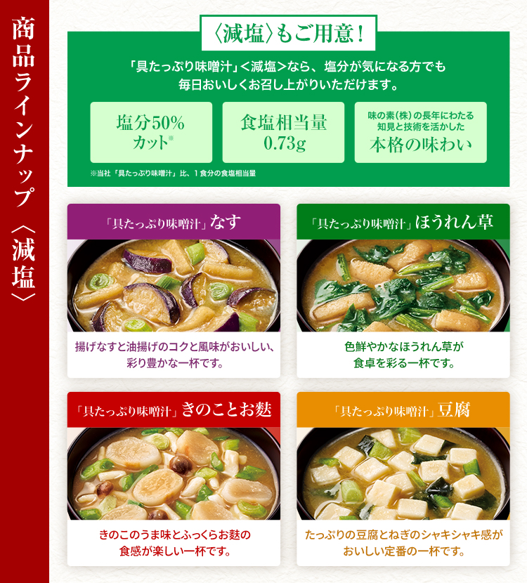 具たっぷり味噌汁」 減塩 なす食品味の素ダイレクト 株-健康食品・化粧品 公式通販。