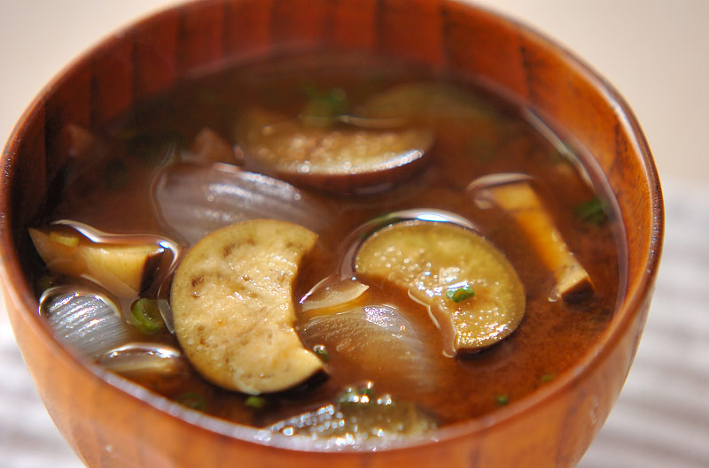 料理レシピ なすと玉ねぎの具だくさん味噌汁株式会社 まるや八丁味噌。