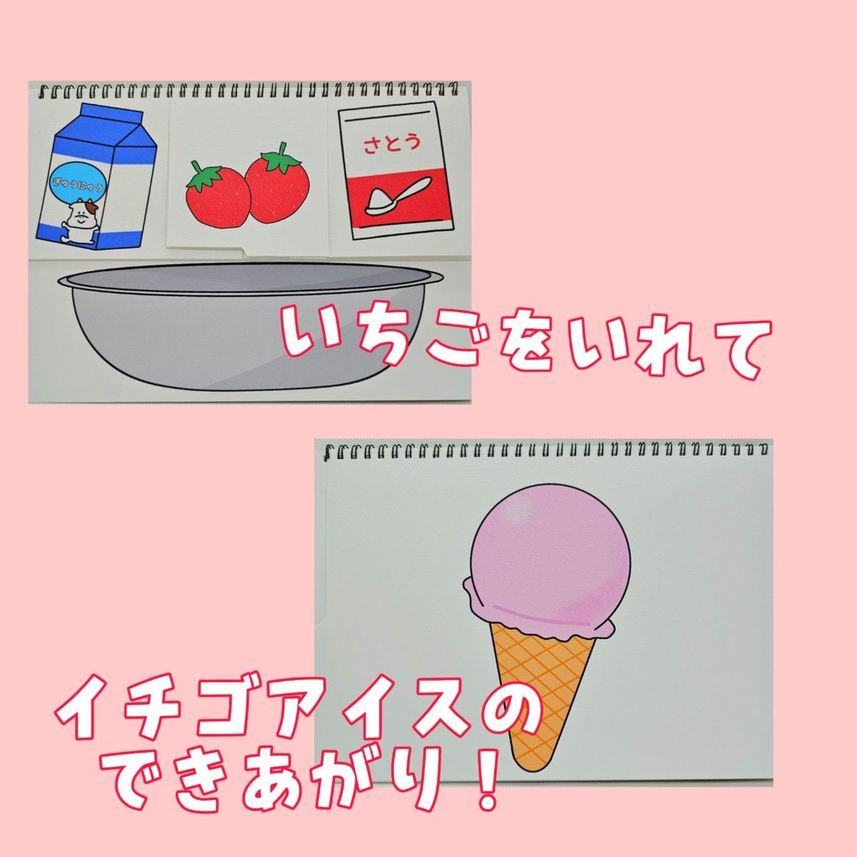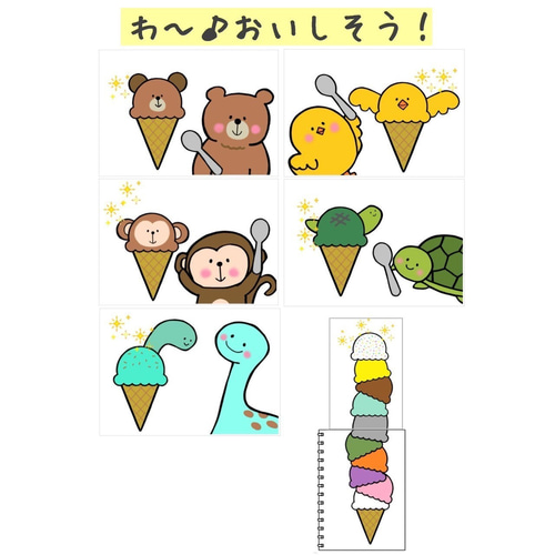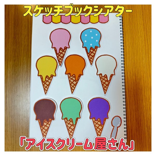 スケッチブックシアター アイスクリームをつくりましょう アイスクリームを作りましょう アイスクリームのうた ぞうさんのぼうし 保育教材 手遊び歌 -lion9110minne byGMOペパボ 国内最大級のハンドメイド・手作り通販サイト。