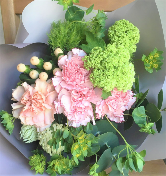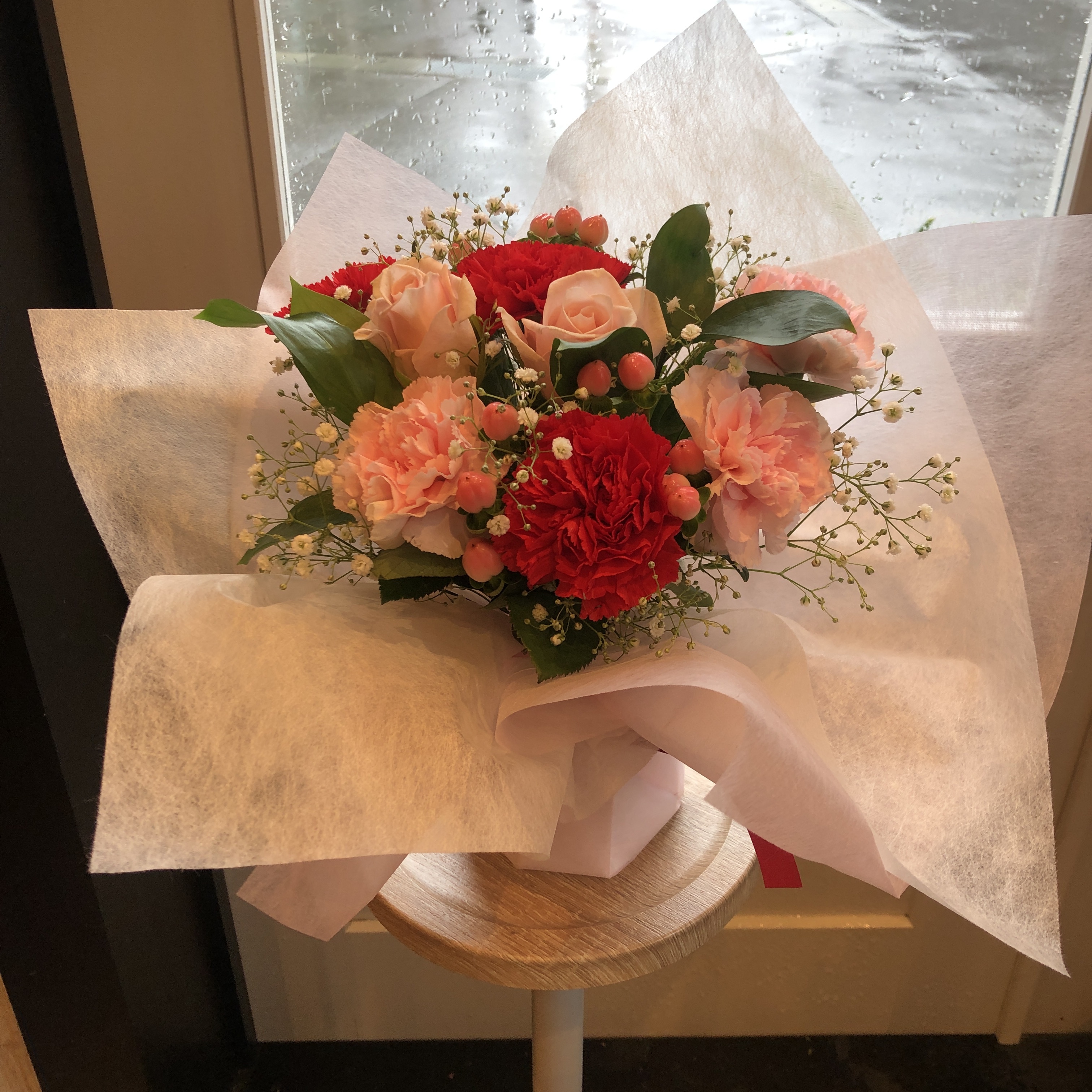 生花花束 そのまま飾れるカーネーションのスタンディングブーケ 花びらメッセージ – パティスリーフラワ。