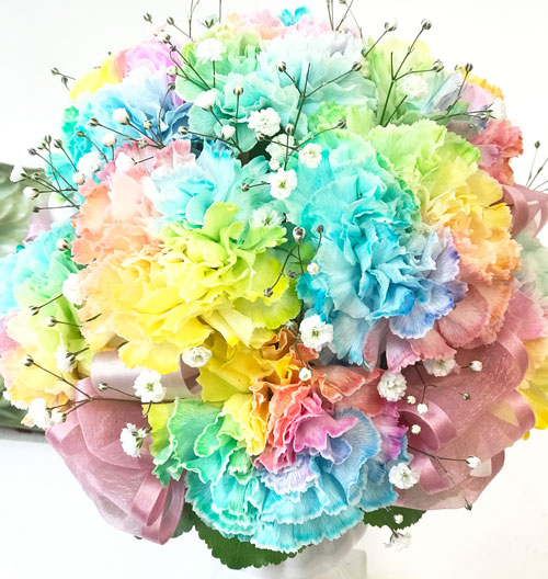 東京下町の花恭生花 奇跡のレインボーカーネーション10本の花束。
