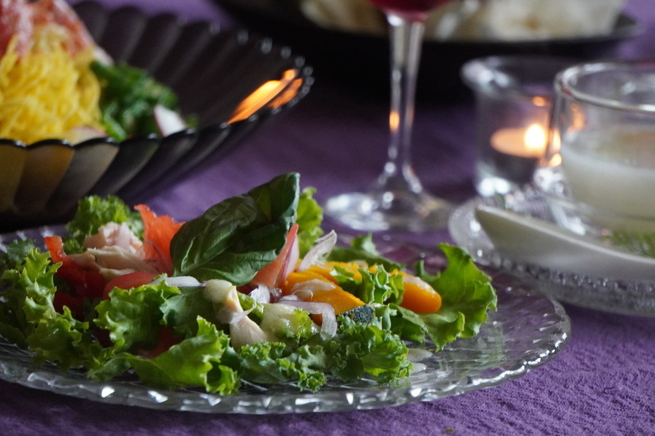 平日の夕食編4サラダの盛り付けいつもの食卓をワンランクアップ 盛り付けのキホンとコツフードソムリエ。