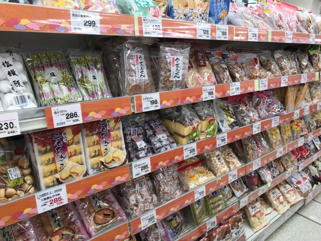 アミューのお菓子コーナーにわくわくするお菓子がいっぱいふくの~と ぽん。