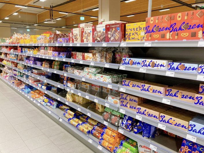 フィンランド暮らし スーパーのお菓子コーナーフィンランドで叶える心地よい暮らし〜人生は「どうせうまくいく」~。