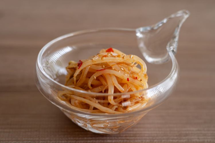 和えるだけの簡単おつまみ♪もやしのピリ辛ナムルのレシピ・作り方 - ちょこっと学べるレシピサイト『なるほど食堂』。