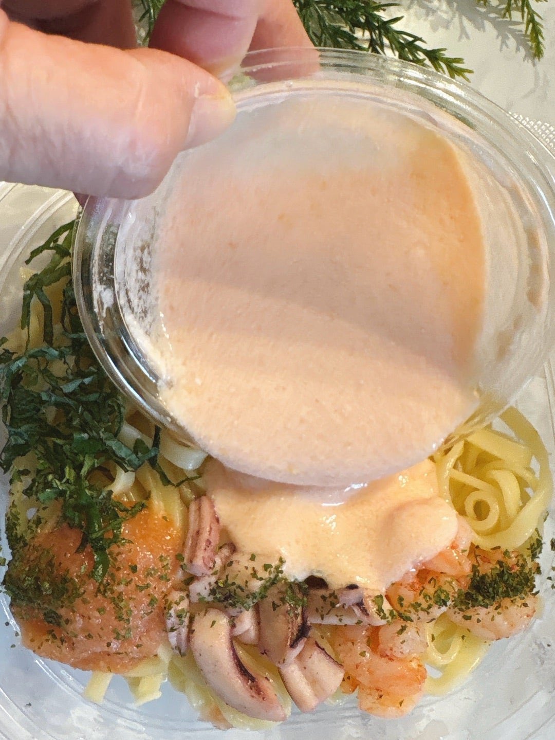 セブンイレブン 冷製生パスタ 海老といかのたらこクリームマリッティマのブログ。