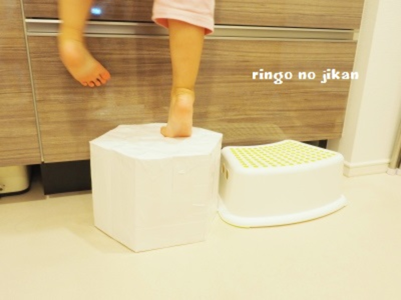 牛乳パックで踏み台作り。3歳になる娘にピッタリサイズでした。 - 気の向くままに。