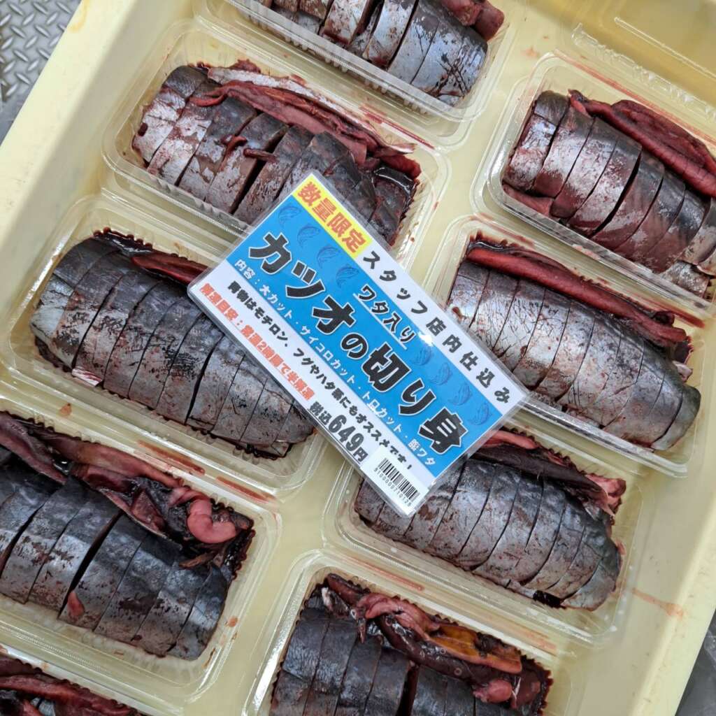 2025 09 27 土本日のお魚🐟生食用・カツオサク、スライスカット ※13:00カツオのサクは完売しました ・シイラサク加熱用・タイの切身 ・シイラの切身 ムニエルにおすすめ!お好みでバター醤油に🧈 本日16時まで営業しております! お取り置きはお電話にて。