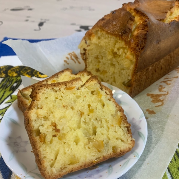 金柑の甘露煮でしっとりパウンドケーキ 砂糖少なめ。