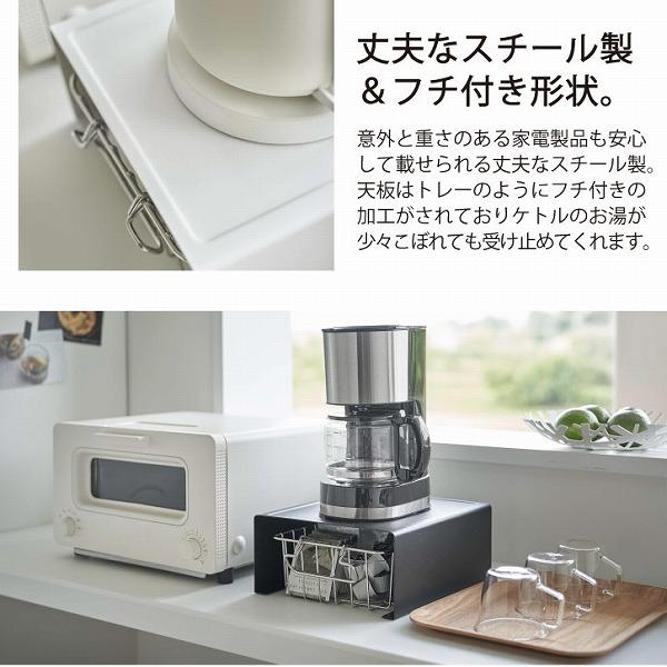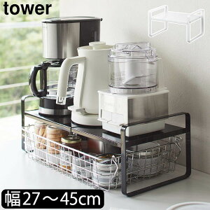 楽天市場10月限定エントリーでP5倍キッチンカウンター上棚 タワー山崎実業 tower トースター 空間ラック キッチンカウンタースパイスラック 伸縮 小物 コーヒーメーカー 鍋 スチール 幅90cm キッチン 収納 棚 レンジ上 見せる収納 飾り棚 ホワイト ブラック。