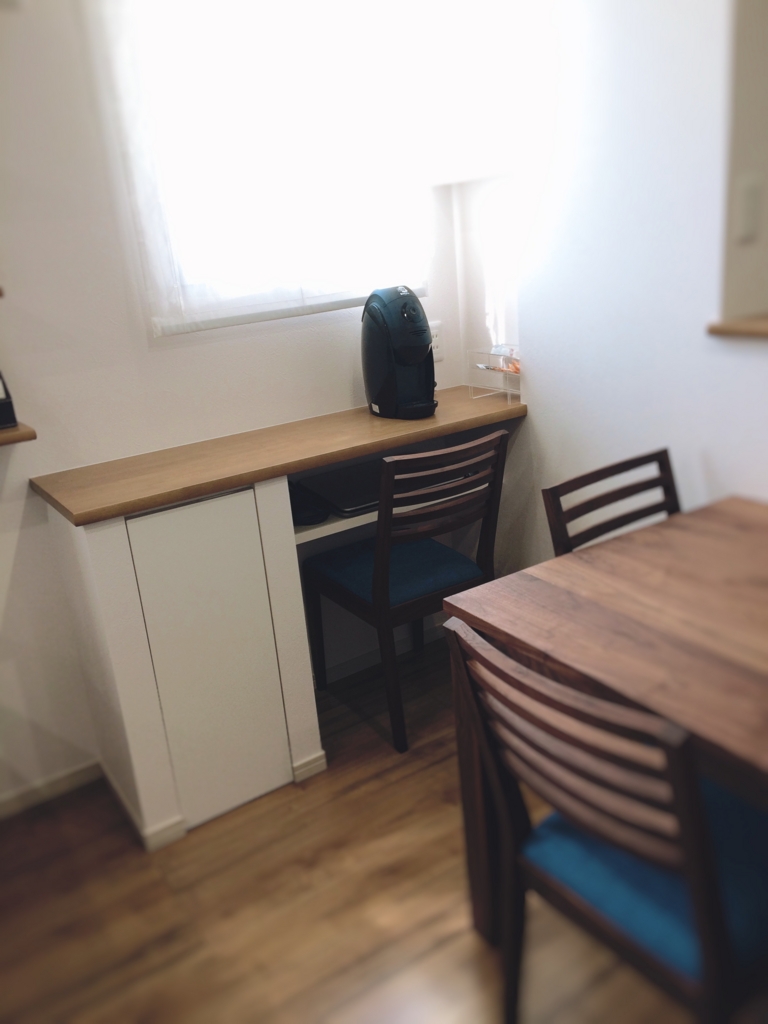 🌿🌿🌿 Goodmorning . カフェコーナー兼 わたしのワークスペース。 自室よりここによく生息している🐿 パソコンしたり コーヒー淹れたり小型のIHもあるからミニキッチンにも🍵 コンセント近いから 充電スポットもここに作ってipadで作業したり。 かなりのお気に入りのば。