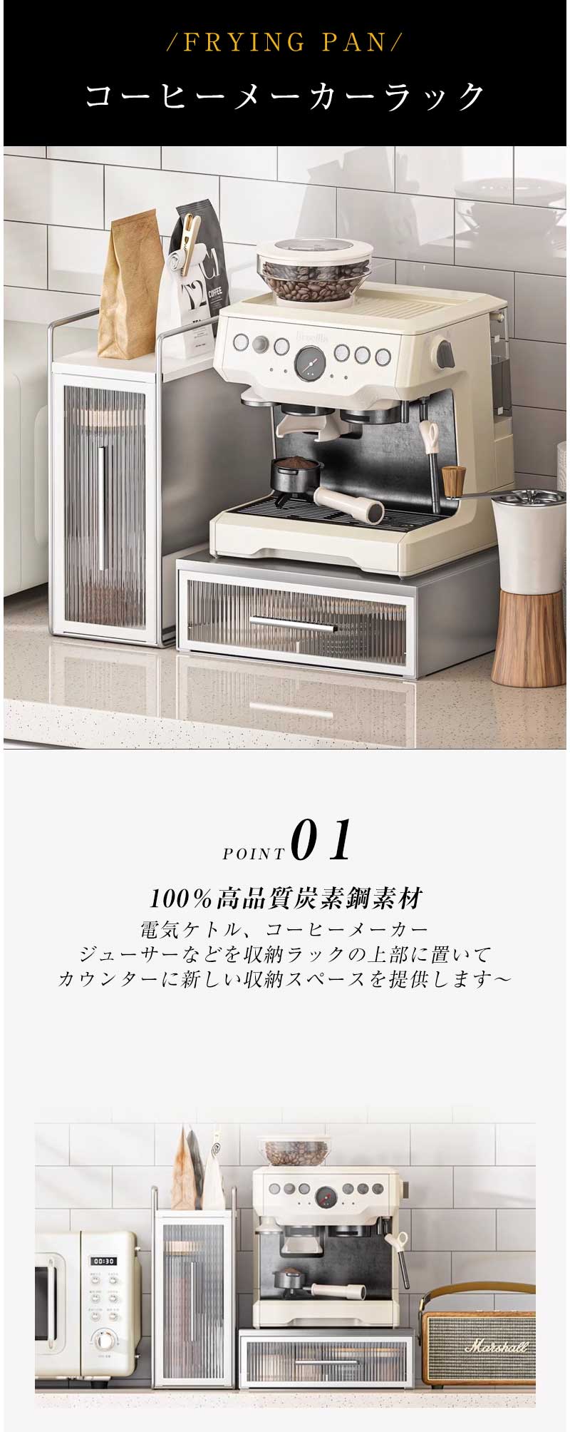 キッチン収納ケース キッチン引き出し カトラリーケース コーヒーメーカー収納 伸縮 スライド ラック キッチン コーヒーマシン コーヒーカプセルキャビネット キッチン雑貨 置き台 収納 整理 おしゃれ かわいい カウンター 北欧 韓国インテリア 整理ケース ストレージ。