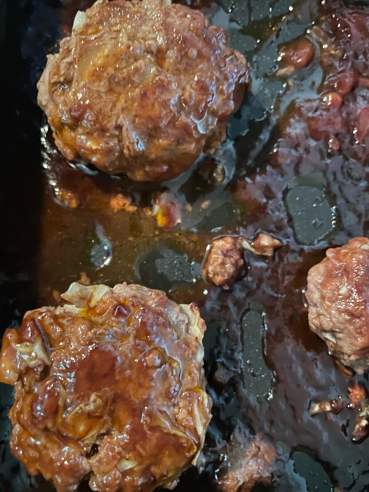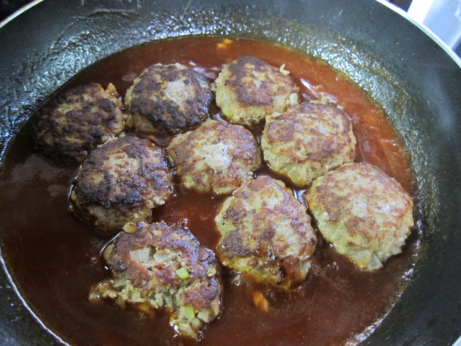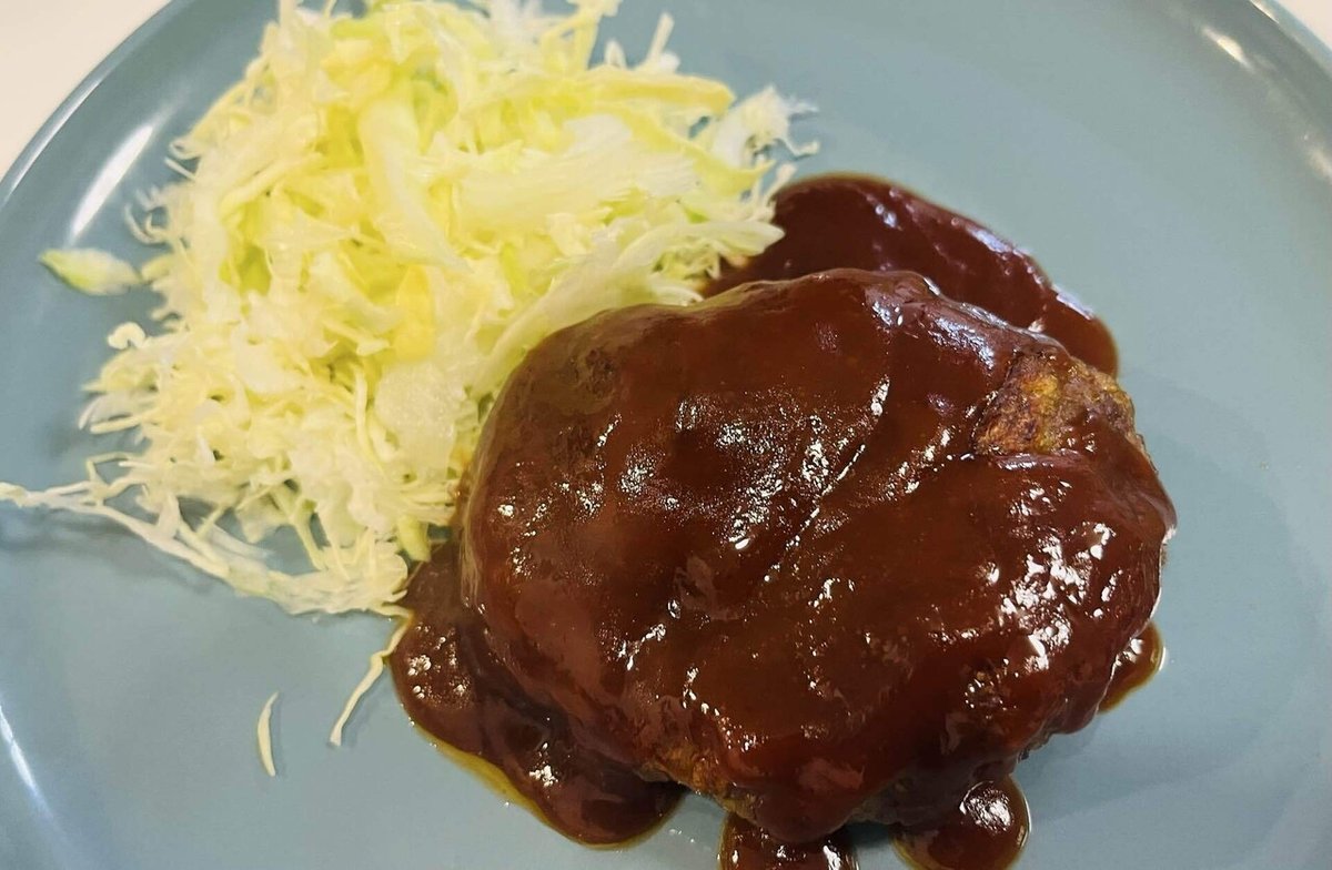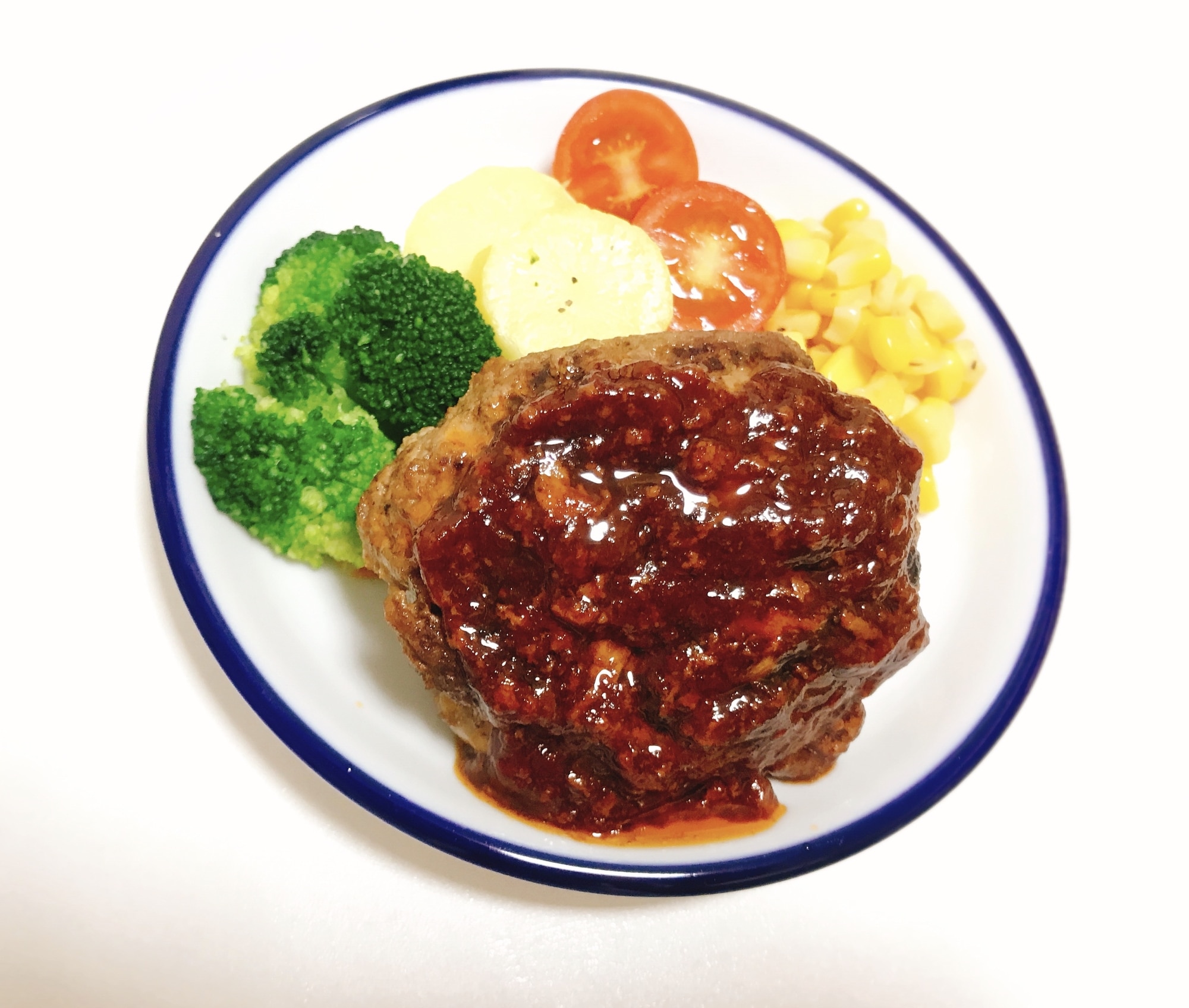 ケチャップと牡蠣醤油とウスターソース味のハンバーグ。
