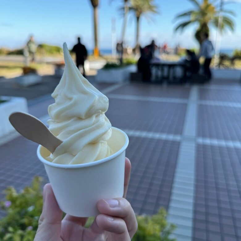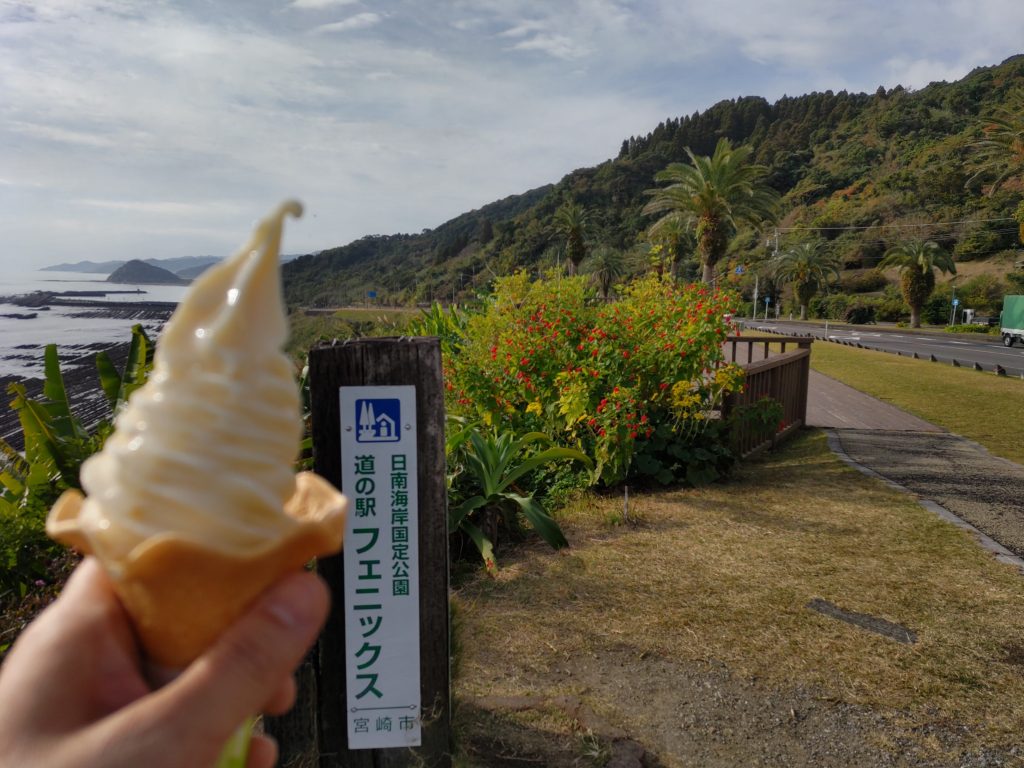 道の駅フェニックスまでドライブ🚗 青島グランドホテルから車で約7分! 名物のソフトクリームをいただいてきました🍦 宮崎の果物のソフトクリーム、マンゴーと日向夏!とても美味しいです😌 晴れてる日は絶景です🌞 南下する際は是非、堀切峠を通り 太平洋を一望してみて。