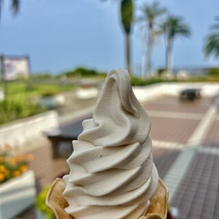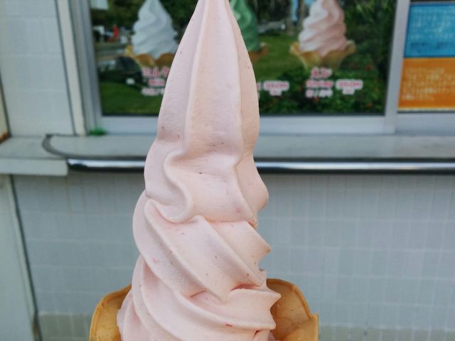 道の駅フェニックス 長らく販売されていなかったえびソフトがなんと!!!! 再販されました🦐🦐 いつもフェニックスに行くと明日葉ソフト頼むんですがえびソフトが復活したと聞いたのでそれは行頼むしかないと えびソフト頼みました! えび風味のするソフト。